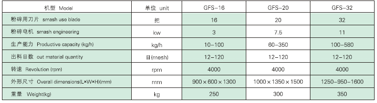 本機純屬高速運轉(zhuǎn)機械,采用一面快口刀刃,另一面為四擊式刀片,使被粉碎物料經(jīng)高速旋轉(zhuǎn)刀片剪切獲得粉碎。該機還可根據(jù)不同物料選用各種形狀及尺寸不同的刀片,粒度大小通過更換篩網(wǎng)獲得。