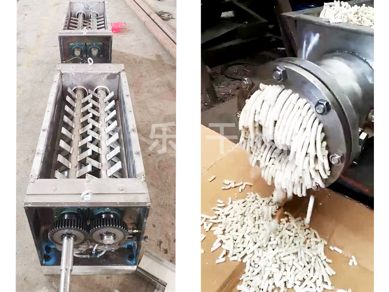 物料成型:長主形條狀,成型效果一般。配套網(wǎng)帶式烘干機(jī)使用。