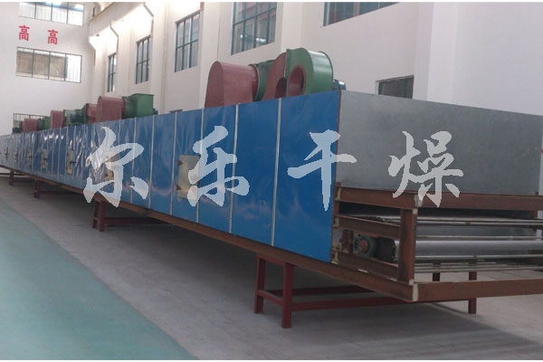 物料由加料器均勻地鋪在網(wǎng)帶上,網(wǎng)帶一般采用12-60目不銹鋼絲網(wǎng),由傳動裝置拖動在干燥機內移動。干燥機由若干單元組成,每一單元熱風單獨循環(huán),部分尾氣由專門排濕風機排出,廢氣由調節(jié)閥控制,熱氣由下往上或由上往下穿過鋪滿物料的網(wǎng)帶完成熱量與質量傳遞的進程,帶走物料水份。網(wǎng)帶緩慢移動,運行速度可根據(jù)物料溫度自由調節(jié),干燥后的成品連續(xù)落入收料器中。上下循環(huán)單元根據(jù)用戶需要可靈活配備,單元數(shù)量亦可根據(jù)需要選取。